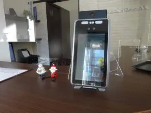 受付にはサーモグラフィーを使った体温計を設置しました。
