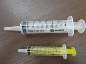 当院では10mlと30mlの給餌用シリンジを用意しています。