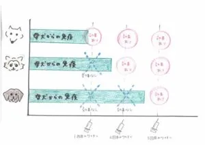 母犬の免疫が切れるころに打つのがベストなのですが、