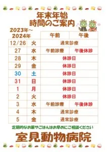 来年もわんちゃん、ねこちゃん、飼い主様のお役に立てるよう励んでいきます。