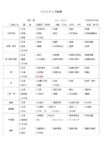 皮膚や毛、骨格や関節、リンパ節、眼や、耳、口などの全身状態を確認し、異常はないか、心臓や肺の音は問題ないかなどを確認します。